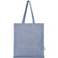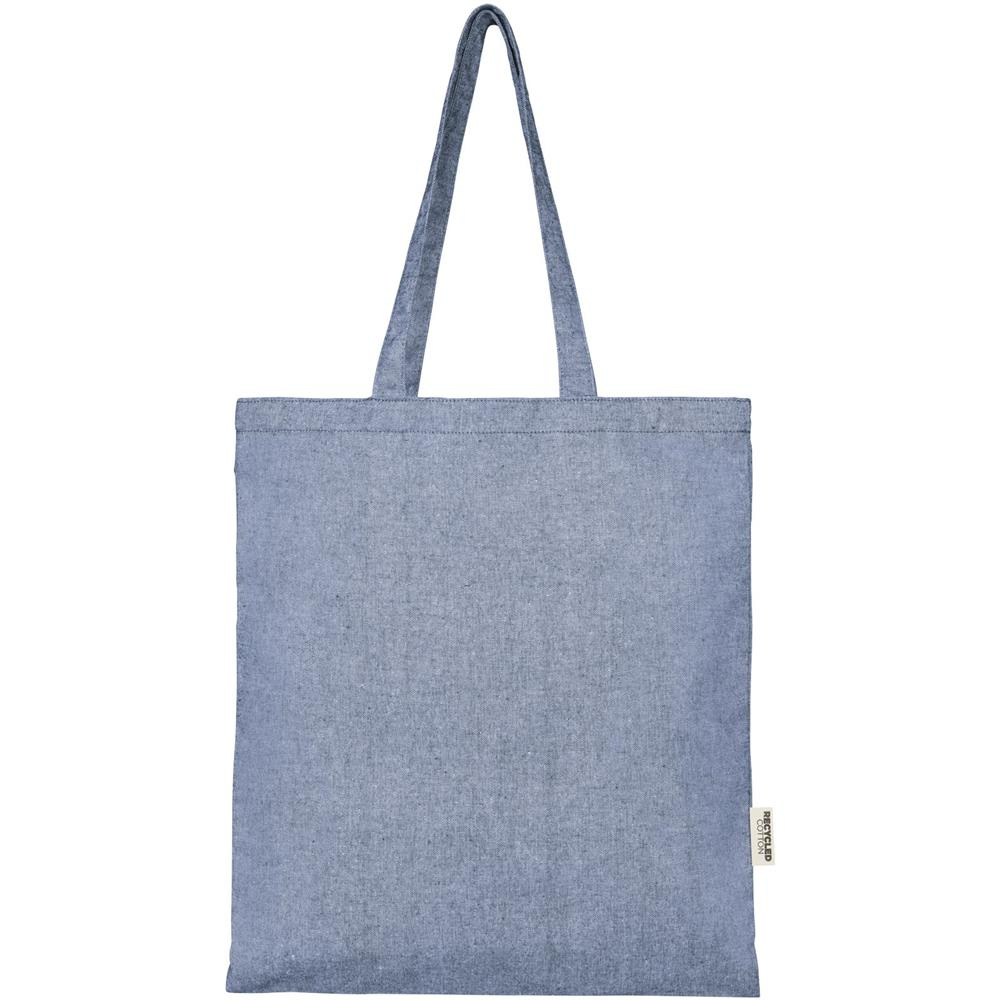 Torba na zakupy wykonana z mieszanki bawełny i poliestru pochodzących z recyklingu o gramaturze 150 g/m². Torbę można łatwo złożyć, aby zmieściła się w niewielkiej przestrzeni i jest idealnym towarzyszem podczas różnych czynności, takich jak zakupy spożywcze, jednodniowe wycieczki lub projekty rzemieślnicze. Bawełna poddana recyklingowi pochodzi z tzw. wstępnych odpadów konsumpcyjnych wytwarzanych przez zakłady włókiennicze w trakcie procesu cięcia. Podobne kolory są mieszane ze sobą, więc nie jest wymagane dodatkowe barwienie. Ze względu na charakter bawełny pochodzącej z recyklingu mogą występować niewielkie różnice w kolorze. Dodaje to bardziej autentycznego wyglądu. Do każdej torby dołączony jest również znacznik Aware™. Ta innowacyjna funkcja pozwala użytkownikom prześledzić za pomocą kodu QR pochodzenie produktu i pokonaną przez niego drogę, zwiększając przejrzystość łańcucha dostaw i wspierając silniejszy związek między produktem a jego procesem produkcyjnym. Wytrzymałość do 5 kg. Długość uchwytu: 31 cm.