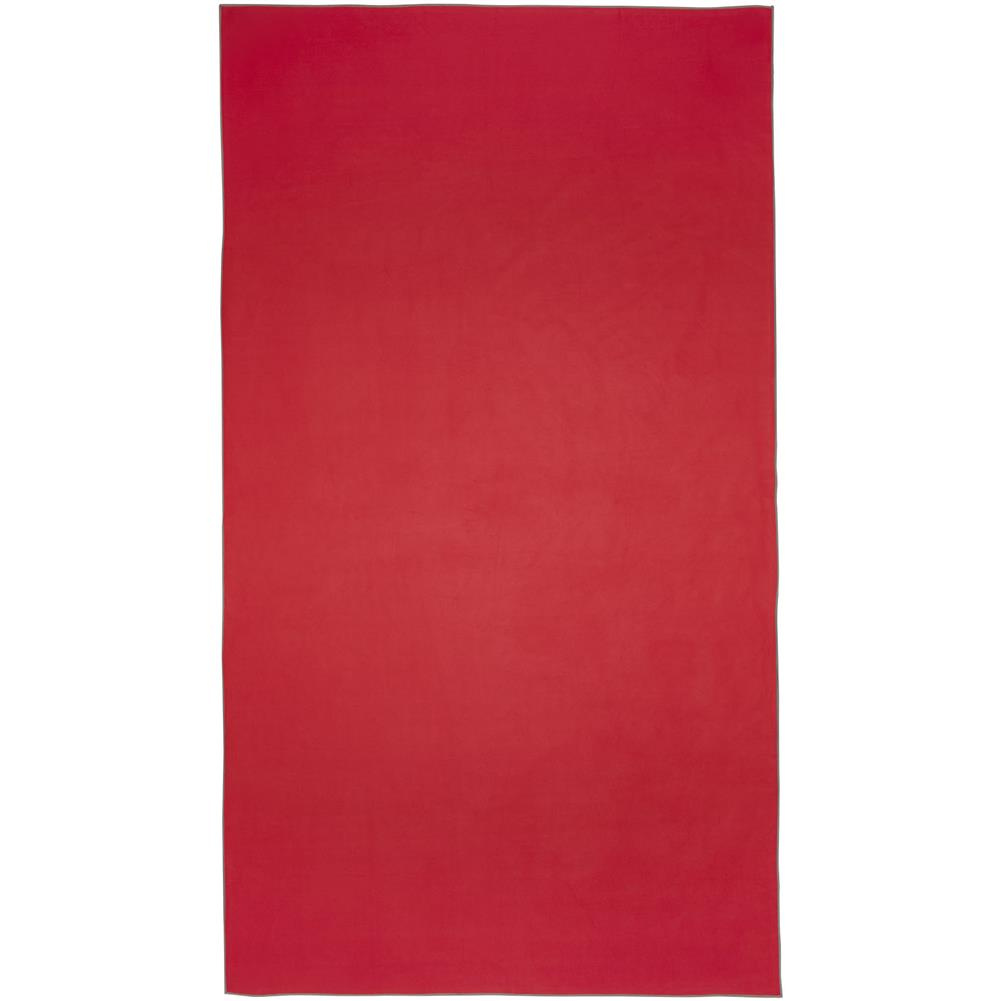 Pieter bardzo chłonny, lekki i szybko schnący ręcznik sportowy wykonany z trwałego i niezwykle miękkiego materiału. Po złożeniu i zabezpieczeniu elastyczną opaską ręcznik zmniejsza się do niewielkich rozmiarów, dzięki czemu nadaje się do zabrania na siłownię, basen lub na wędrówkę z plecakiem albo kemping. Ręcznik ma wymiary 180 x 100 cm i jest wykonany w 90% z poliestru pochodzącego z recyklingu z certyfikatem GRS i w 10% z nylonu. Można go prać w pralce w temperaturze 40°C. Dostarczany z woreczkiem do przechowywania (25 x 8,5 cm) wykonanym z plastiku PET z recyklingu, który zapewnia doskonałe miejsce na nadruk logo.
