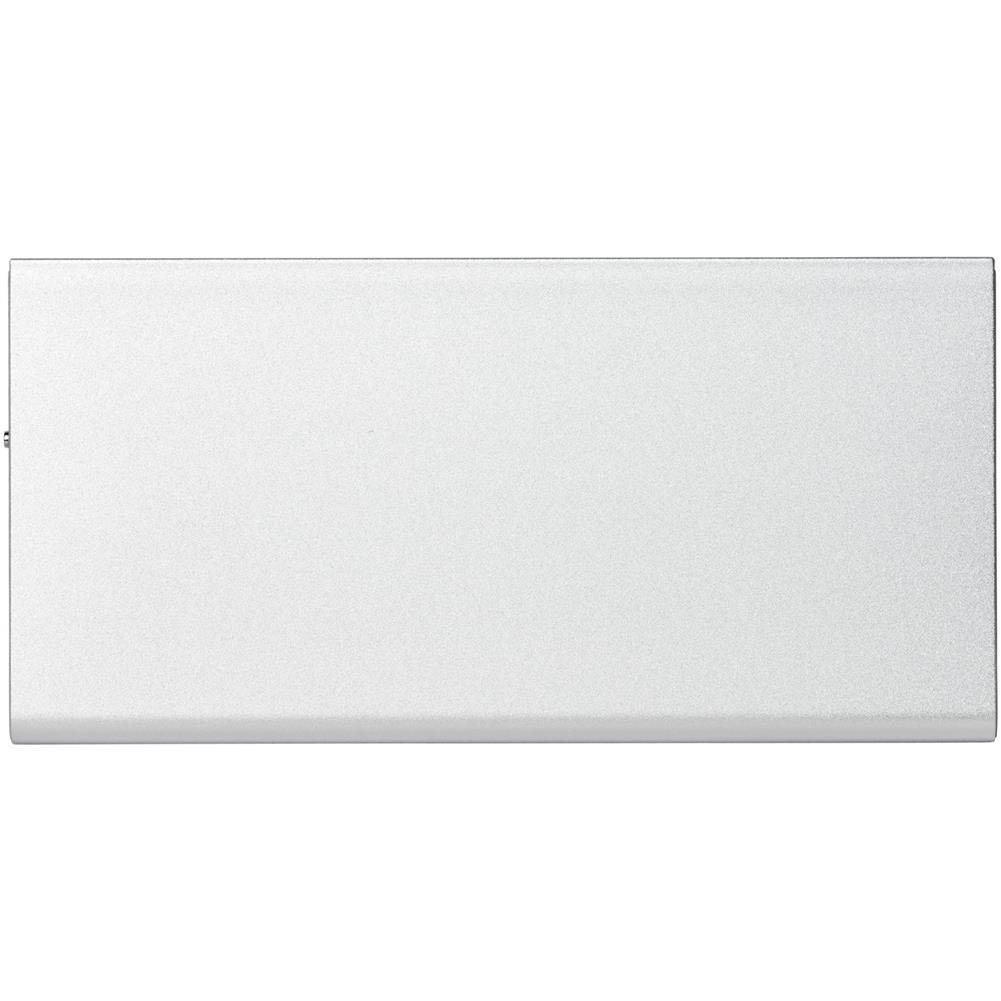 Aluminiowy power bank Plate 8000 mAh wyposażony jest w litowo-polimerową baterię o pojemności 8000 mAh klasy A i cechuje go smukła konstrukcja.