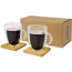Zestaw 2 kubków termicznych dwuściennych z podkładką bambusową. Użyty bambus pochodzi ze zrównoważonych, ekologicznych i społecznie odpowiedzialnych źródeł. Dzięki podwójnym ściankom ze szkła borokrzemianowego temperatura napoju jest utrzymywana przez długi czas. Pojemność 350 ml. Rozmiar podkładki: 10 x 10 x 1 cm.