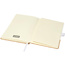 Dopasowana kolorystycznie gumka do zamykania, zakładka ze wstążki, 80 kremowych kartek w linie (gramatura 80 g/m²) i wygodna, rozkładana kieszeń z tyłu na małe