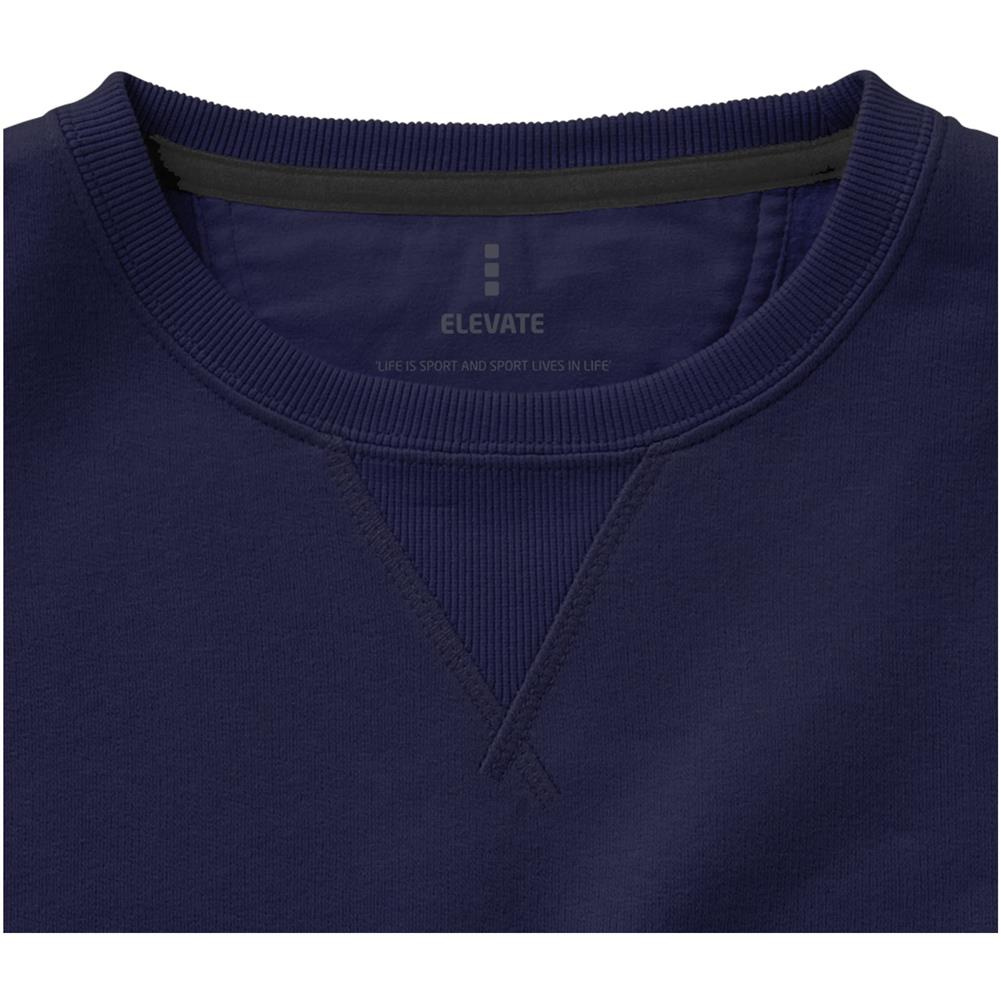 Sweter unisex z okrągłym dekoltem Surrey to harmonijne połączenie stylu i wygody. Klasyczny krój z okrągłym dekoltem został wzbogacony o płaską dzianinową wstawkę w kształcie litery V na środku przodu, dodając nowoczesnego akcentu do ponadczasowego wyglądu. Szczotkowane wnętrze zapewnia wyjątkową miękkość, ciepło i przytulność. Satynowa taśma na ramionach nie tylko zwiększa trwałość, ale także dodaje subtelnego wyrafinowania. Wykonany z wysokiej jakości połączenia bawełny i poliestru, o gramaturze 300 g/m², sweter ten gwarantuje zarówno styl, jak i wygodę na różne okazje. Dzięki zastosowaniu bawełny BCI, ten sweter nie tylko otuli Cię komfortem, ale także będzie zgodny z zasadami zrównoważonego rozwoju. BCI (Better Cotton Initiative) oznacza nasze zaangażowanie w odpowiedzialne pozyskiwanie bawełny i produkcję przyjazną dla środowiska. Wybierając sweter Surrey, dokonujesz bardziej zrównoważonego wyboru.