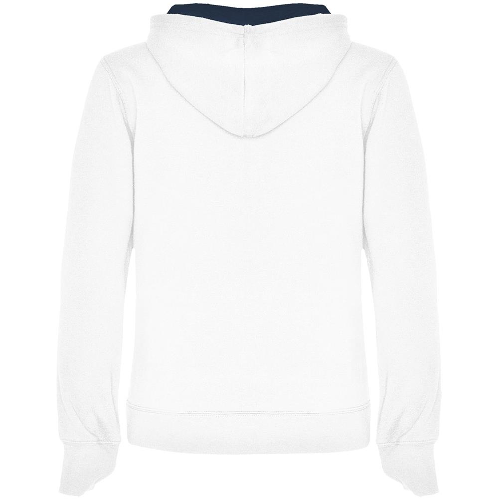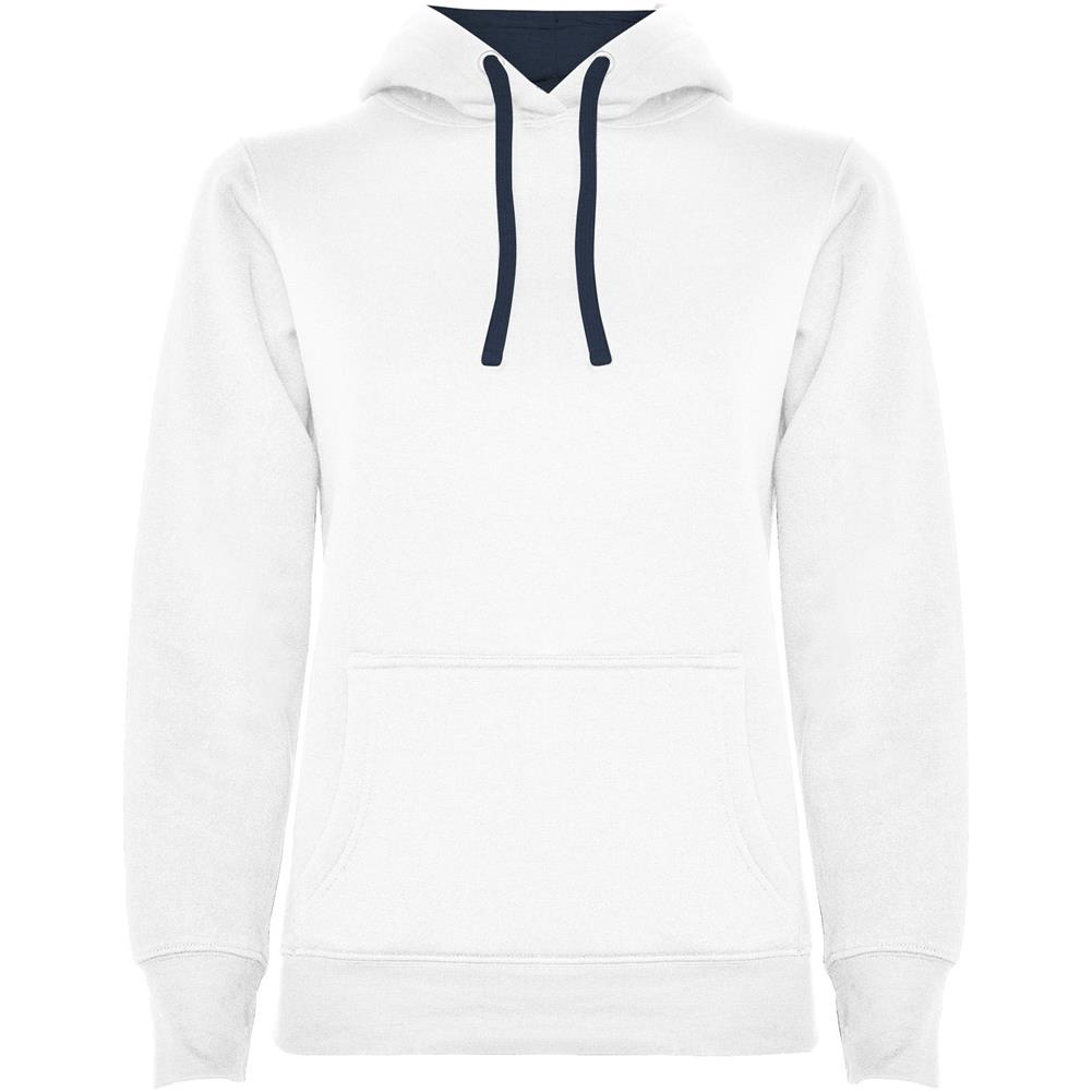 Bluza o dopasowanym kroju z dwukolorowym kapturem z podwójnego materiału, kontrastowym regulowanym sznurkiem, krytymi szwami w kołnierzu i kieszenią kangurką. Ściągacze 1x1 z elastanu w mankietach i u dołu bluzy. Rozcięcie na kciuk. Usuwalna metka.