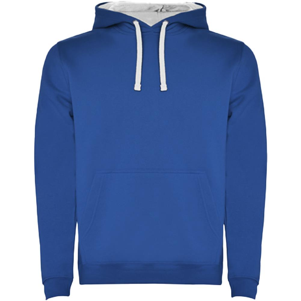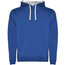 Dwukolorowa bluza z kapturem z podwójnego materiału, kontrastowym regulowanym sznurkiem, wzmocnionymi krytymi szwami w kołnierzu i kieszenią typu kangurka. Ściągacze 1x1 z elastanu w mankietach i pasie. Usuwalna metka.