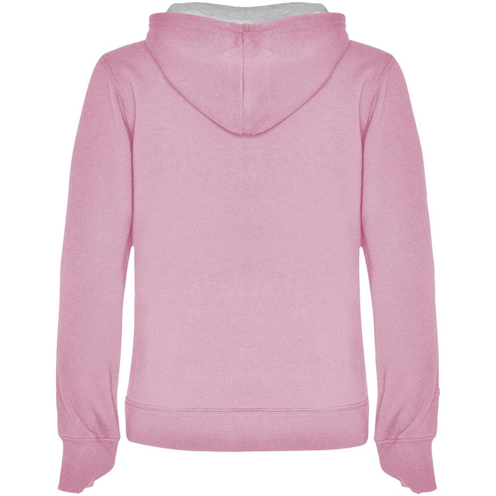 Bluza o dopasowanym kroju z dwukolorowym kapturem z podwójnego materiału, kontrastowym regulowanym sznurkiem, krytymi szwami w kołnierzu i kieszenią kangurką. Ściągacze 1x1 z elastanu w mankietach i u dołu bluzy. Rozcięcie na kciuk. Usuwalna metka.