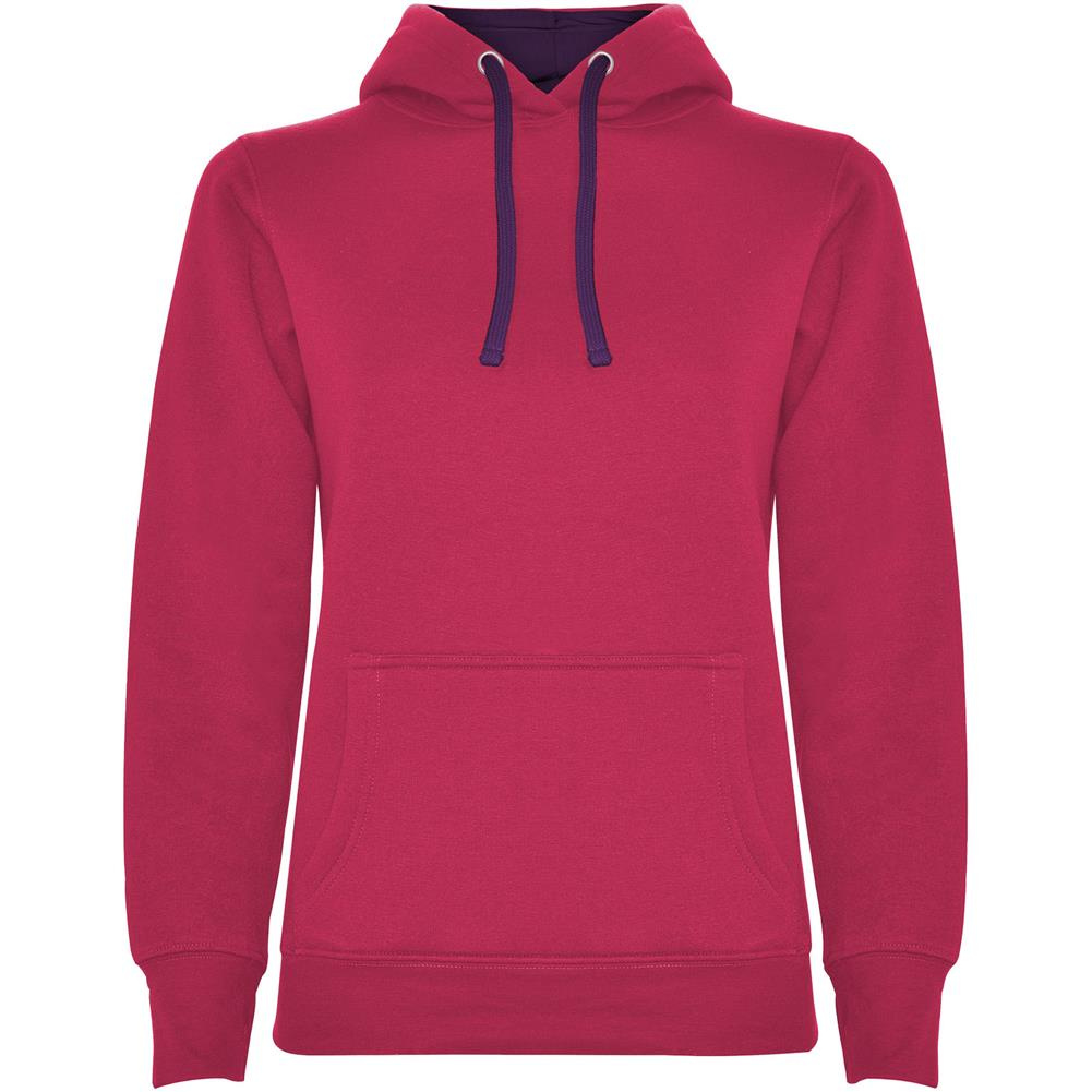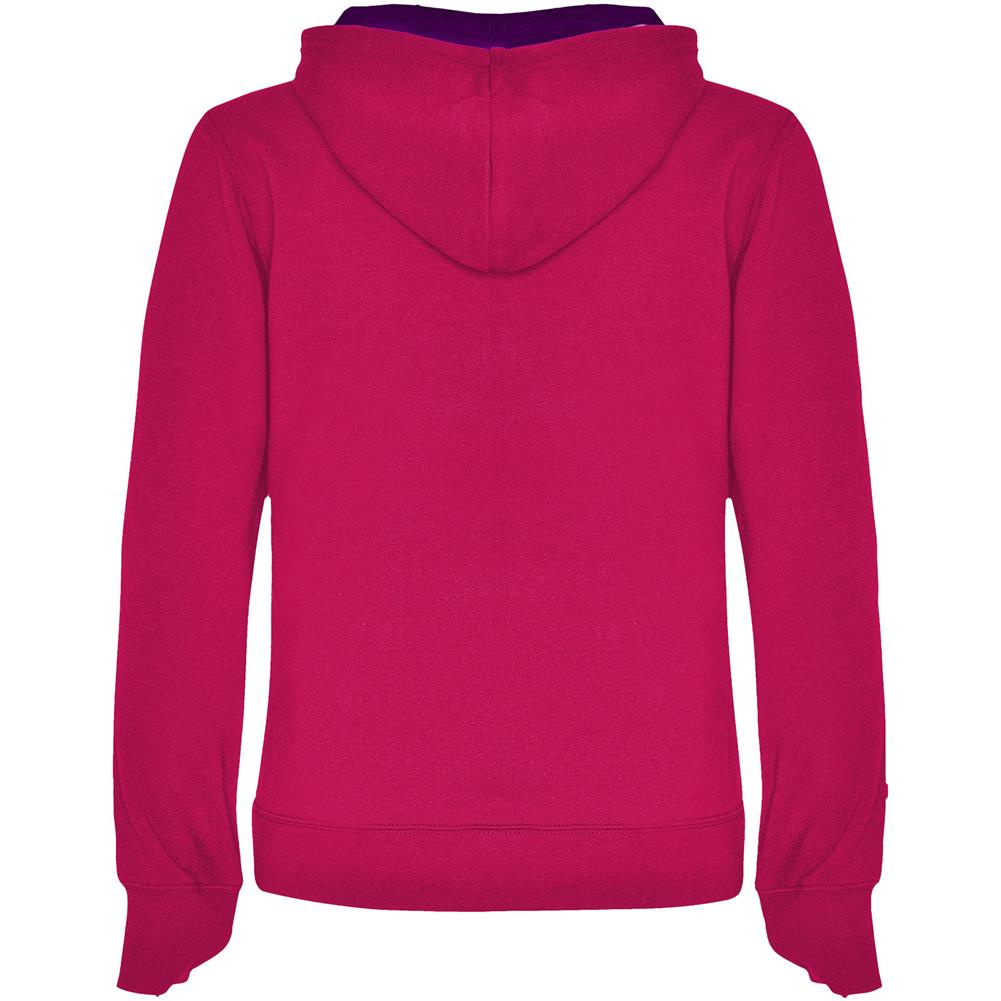 Bluza o dopasowanym kroju z dwukolorowym kapturem z podwójnego materiału, kontrastowym regulowanym sznurkiem, krytymi szwami w kołnierzu i kieszenią kangurką. Ściągacze 1x1 z elastanu w mankietach i u dołu bluzy. Rozcięcie na kciuk. Usuwalna metka.