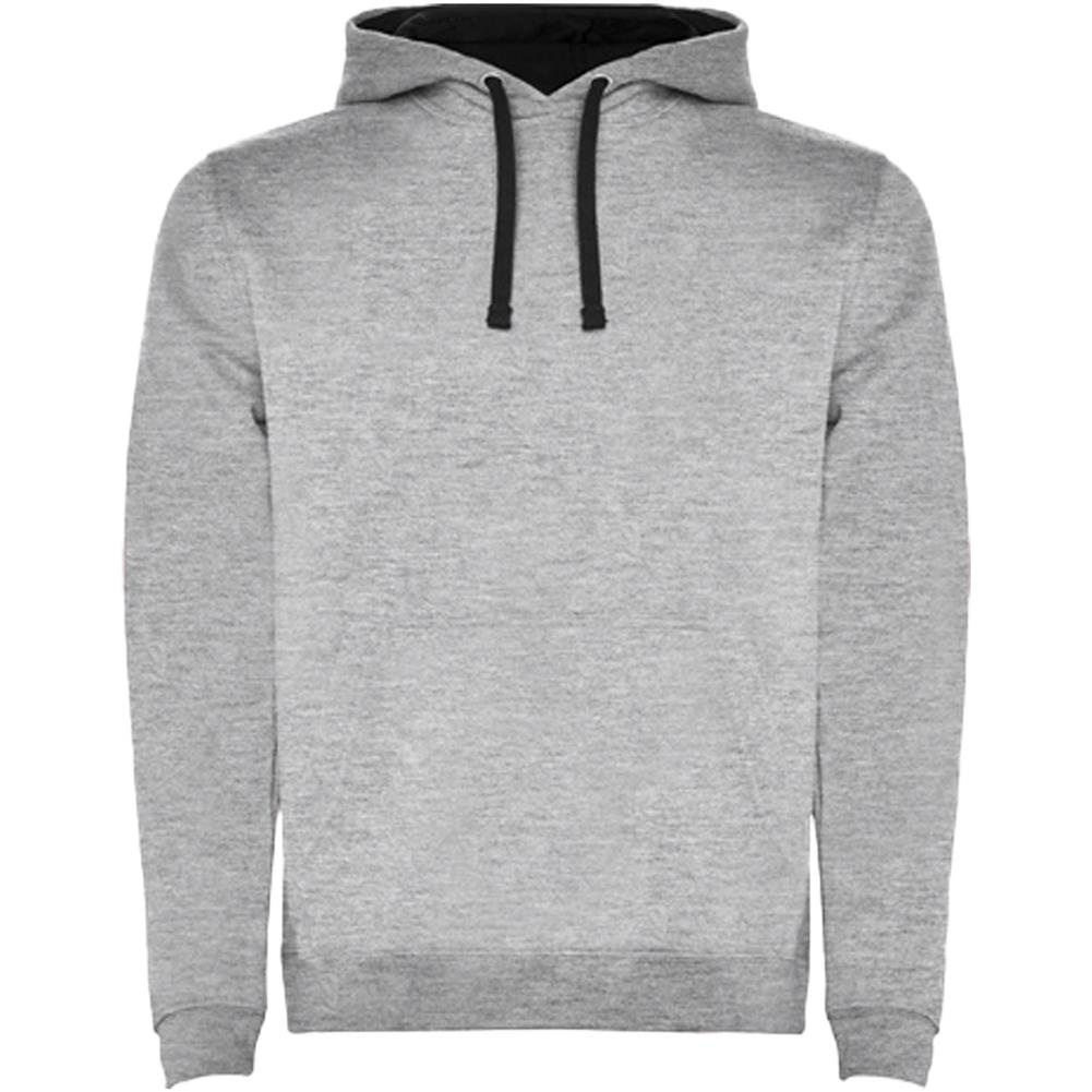 Dwukolorowa bluza z kapturem z podwójnego materiału, kontrastowym regulowanym sznurkiem, wzmocnionymi krytymi szwami w kołnierzu i kieszenią typu kangurka. Ściągacze 1x1 z elastanu w mankietach i pasie. Usuwalna metka.
