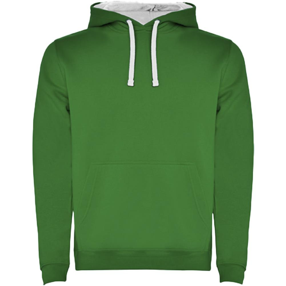 Dwukolorowa bluza z kapturem z podwójnego materiału. Wzmocnione kryte szwy w kołnierzu i kieszeń kangurka. Ściągacze 1x1 z elastanu w mankietach i pasie. Usuwalna metka.