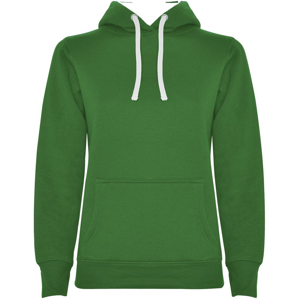 Bluza o dopasowanym kroju z dwukolorowym kapturem z podwójnego materiału, kontrastowym regulowanym sznurkiem, krytymi szwami w kołnierzu i kieszenią kangurką. Ściągacze 1x1 z elastanu w mankietach i u dołu bluzy. Rozcięcie na kciuk. Usuwalna metka.