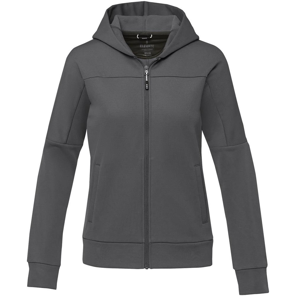 Damska kurtka Nubia z pełnym zamkiem błyskawicznym - idealne połączenie stylu i innowacji. Wykonany z mieszanki poliestru i Sorona® o gramaturze 245 g/m², materiał ma wyraźną teksturę "pique look", wyróżniając się wyjątkowym i charakterystycznym wyglądem. U podstaw Nubii leży niezwykła tkanina Sorona®, materiał, który wyznacza nowe standardy w zakresie komfortu i wydajności. Ta zrównoważona tkanina, stanowiąca 30% składu kurtki, oferuje wyjątkową równowagę między elastycznością, trwałością i odpowiedzialnością za środowisko. Wnętrze kurtki jest starannie szczotkowane, zapewniając miękkość w dotyku. To szczotkowane wnętrze nie tylko zwiększa komfort, ale także pomaga zatrzymać ciepło, dzięki czemu kurtka jest idealnym towarzyszem w chłodniejsze dni. Funkcjonalność została podniesiona na nowy poziom dzięki włączeniu wewnętrznego portu wyjściowego mediów wraz z prowadnicą przewodu. Kurtka ma dopasowany krój zapewniający kobiecy wygląd.
