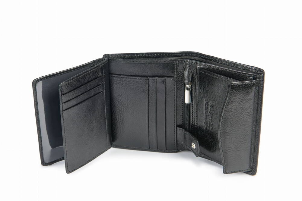 Portfel PPM7 jest wyposażony w wiele przegródek i kieszeni, które pozwalają na świetną organizację. Portfel ma miejsce na monety, banknoty, karty i dokumenty.