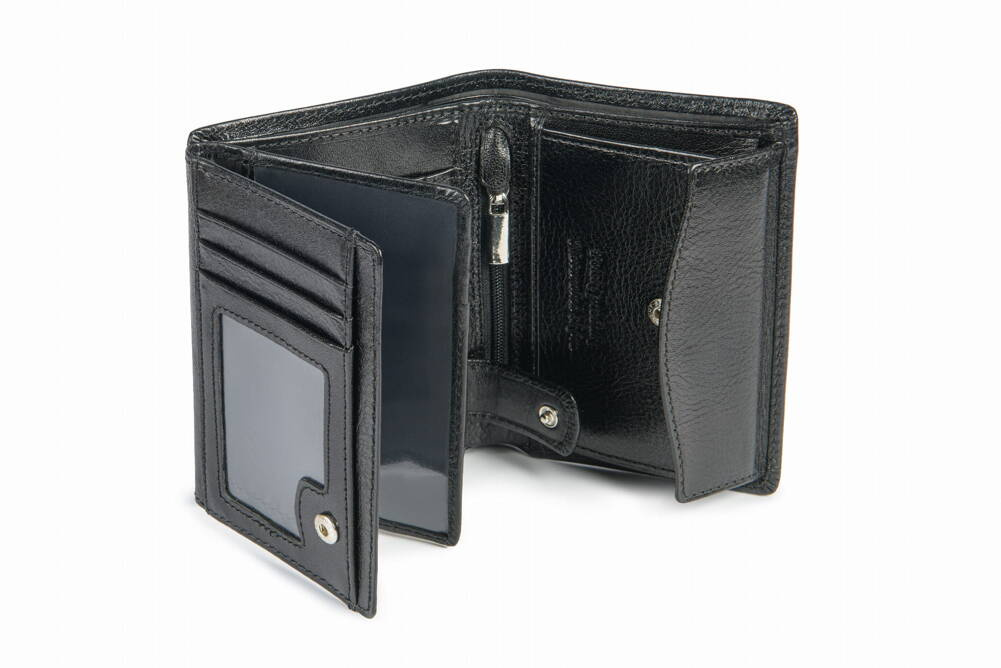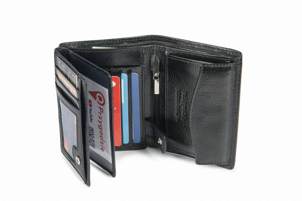 Portfel PPM7 jest wyposażony w wiele przegródek i kieszeni, które pozwalają na świetną organizację. Portfel ma miejsce na monety, banknoty, karty i dokumenty.