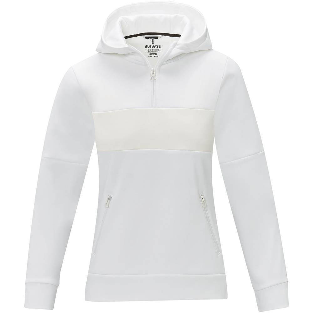 Damski rozpinany sweter z kapturem Sayan to wyjątkowe połączenie wydajności i stylu. Konstrukcja anoraka płynnie łączy modę i funkcjonalność, a ćwierć zamka błyskawicznego zapewnia wszechstronność warstw. Wykonany z mieszanki poliestru i dzianiny Sorona® o gramaturze 350 g/m². Włókno Sorona® zwiększa ekologiczność kurtki, wprowadzając element zrównoważonego rozwoju bez uszczerbku dla wydajności. Kontrastowa tkanina na przednim panelu, wykonana z nylonu ripstop 280T, dodaje projektowi trwałości i tekstury oraz jest idealnym miejscem do zaprezentowania Twojej marki. Niezależnie od tego, czy wyruszasz na przygodę na świeżym powietrzu, czy po prostu poruszasz się po codziennej rutynie, sweter z kapturem Sayan bez wysiłku łączy modę z funkcjonalnością. Ten sweter ma dopasowany krój, który zapewnia kobiecy wygląd.