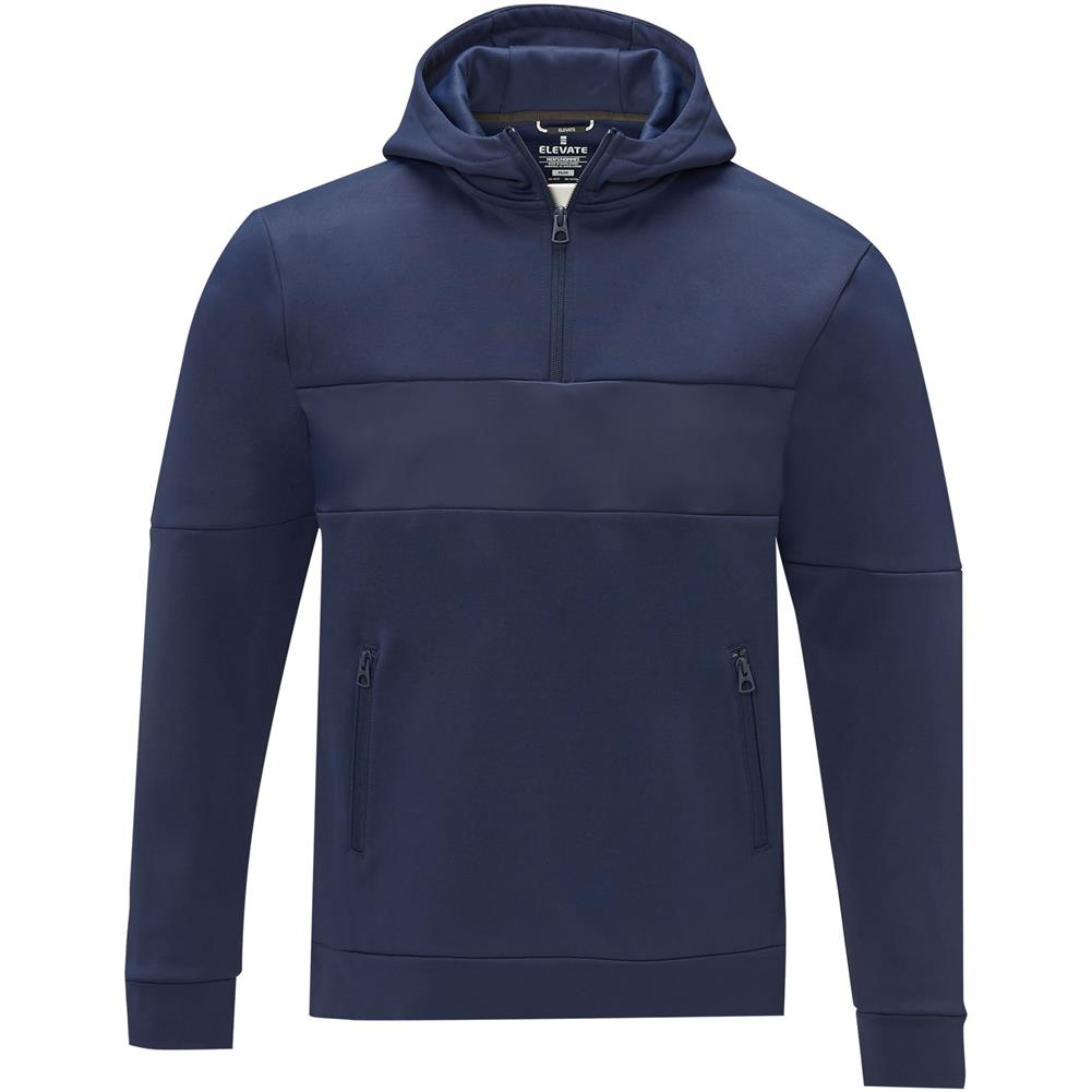 Męska bluza anorak z kapturem zapinana na zamek błyskawiczny Sayan to wyjątkowe połączenie wydajności i stylu. Konstrukcja anoraka płynnie łączy modę i funkcjonalność, z ćwierć zamkiem błyskawicznym dla wszechstronności w warstwach. Wykonany z mieszanki poliestru i dzianiny Sorona® o gramaturze 350 g/m². Włókno Sorona® zwiększa ekologiczność kurtki, wprowadzając element zrównoważonego rozwoju bez uszczerbku dla wydajności. Kontrastowa tkanina na przednim panelu, wykonana z nylonu ripstop 280T, dodaje projektowi trwałości i tekstury oraz jest idealnym miejscem do zaprezentowania Twojej marki. Niezależnie od tego, czy wyruszasz na przygodę na świeżym powietrzu, czy po prostu poruszasz się po codziennej rutynie, sweter z kapturem Sayan bez wysiłku łączy modę z funkcjonalnością.