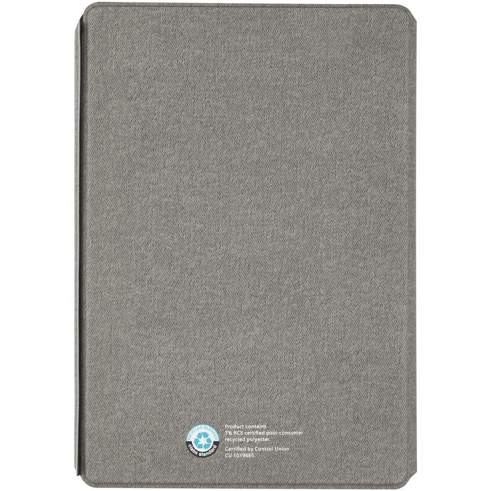 Notu teczka z notatnikiem do pisania częściowo wykonana z poliestru pochodzącego z recyklingu z certyfikatem RCS, co czyni ją bardziej zrównoważonym wyborem,