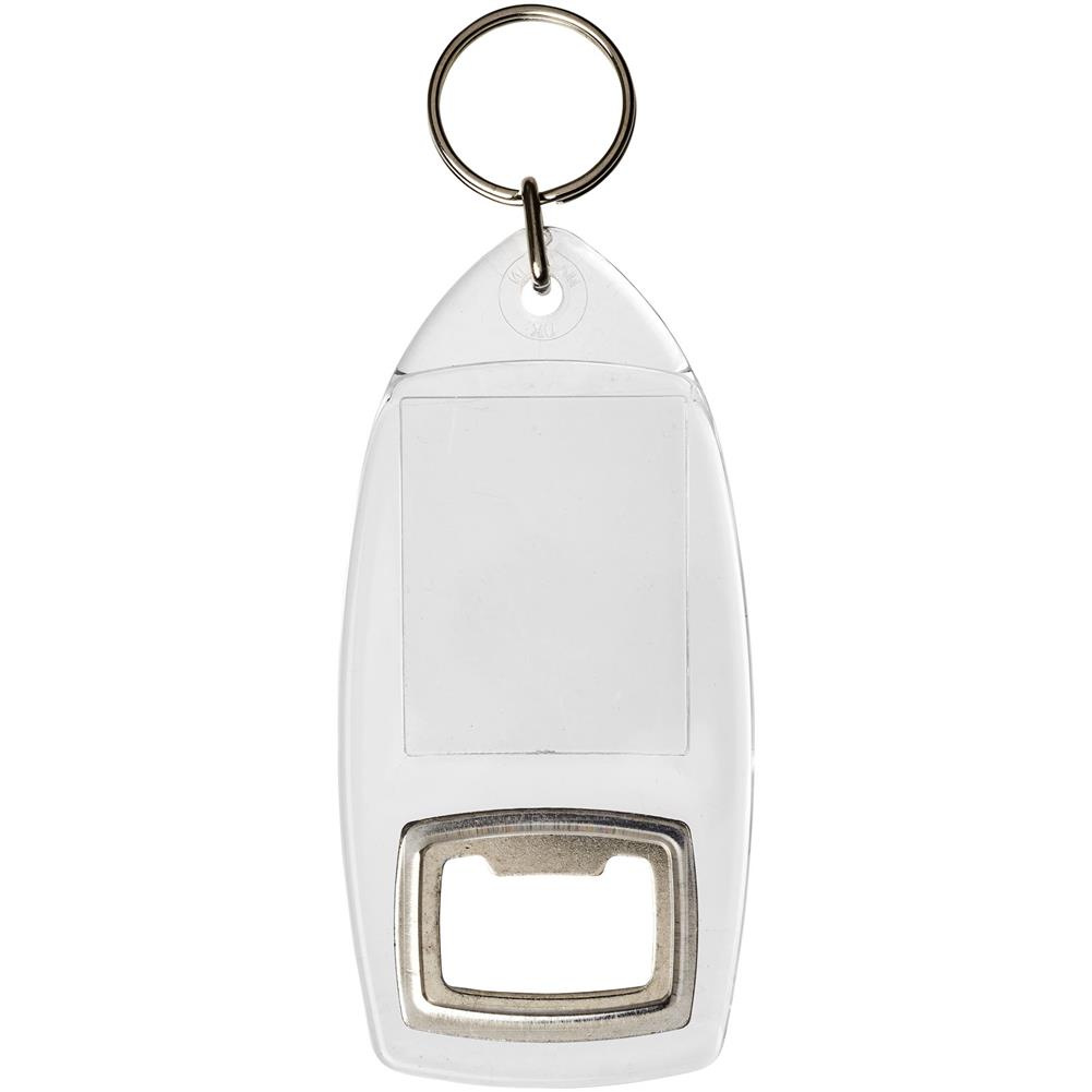Breloczek R1 z otwieraczem do butelek i metalowym kluczykiem.