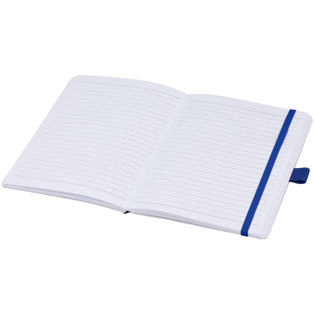 Notatnik z papieru z recyklingu (70 g/m²) z zaokrąglonymi narożnikami, kolorową gumką i pętelką na długopis, która pasuje do 107384 kolorów długopisu.
