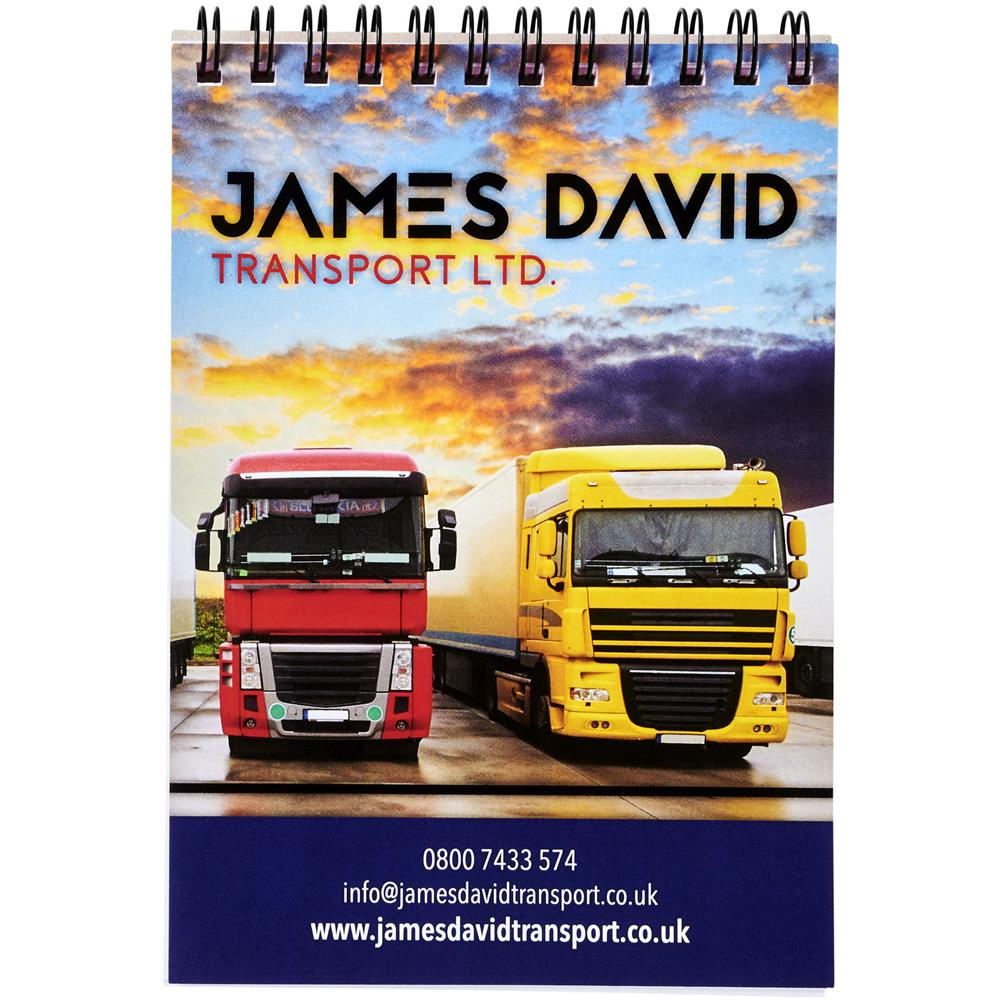 Obity w lakierowaną, twardą okładkę (250g/m2) z czystymi kartkami (80g/m2). Standardowo 50 kartek, dostępny również w wersji 80 kartek.