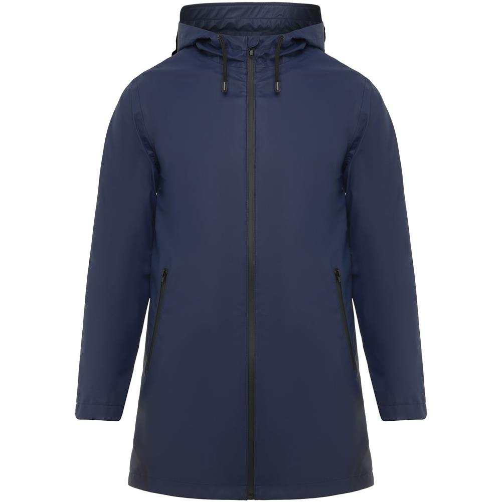 Wodoodporna kurtka przeciwdeszczowa. Kaptur z daszkiem. Zgrzewane zamki błyskawiczne i szwy. Kontrastowe detale w kolorze czarnym. Dwie kieszenie boczne z zamkiem błyskawicznym. Rozcięcie z tyłu. Usuwalna metka. Wodoodporna.