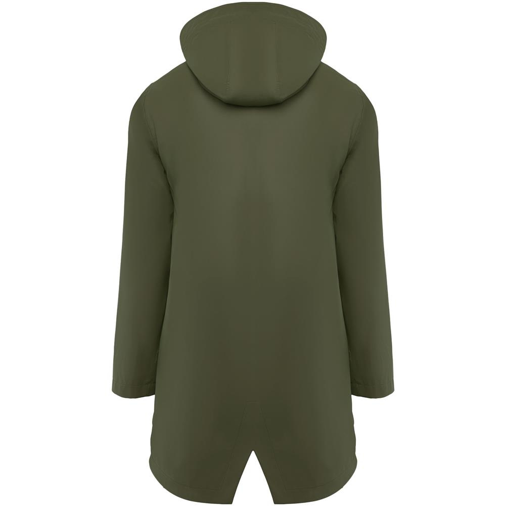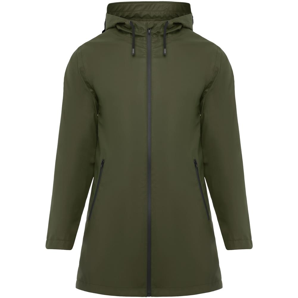 Wodoodporna kurtka przeciwdeszczowa dla kobiet. Kaptur z daszkiem. Zgrzewane zamki i szwy. Kontrastowe detale w kolorze czarnym. Dwie boczne kieszenie zapinane na zamek. Rozcięcie z tyłu. Usuwalna metka. Wodoodporna.