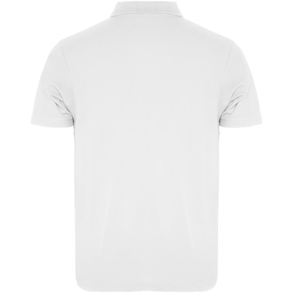 Koszulka polo z krótkim rękawem. Zapięcie na trzy guziki. Prążkowany kołnierz. Wzmocnione kryte szwy na karku i ramionach. Usuwalna metka.