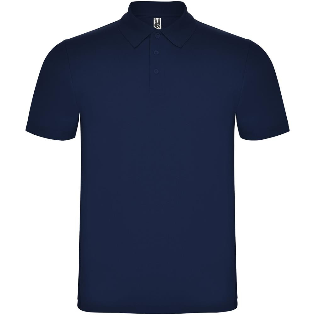 Koszulka polo z krótkim rękawem. Zapięcie na trzy guziki. Prążkowany kołnierz. Wzmocnione kryte szwy na karku i ramionach. Usuwalna metka.