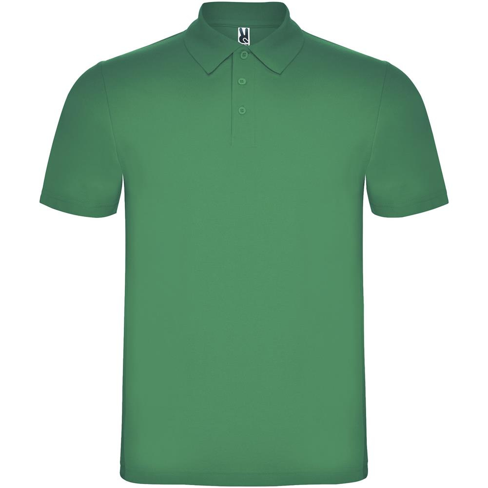 Koszulka polo z krótkim rękawem. Zapięcie na trzy guziki. Prążkowany kołnierz. Wzmocnione kryte szwy na karku i ramionach. Usuwalna metka.