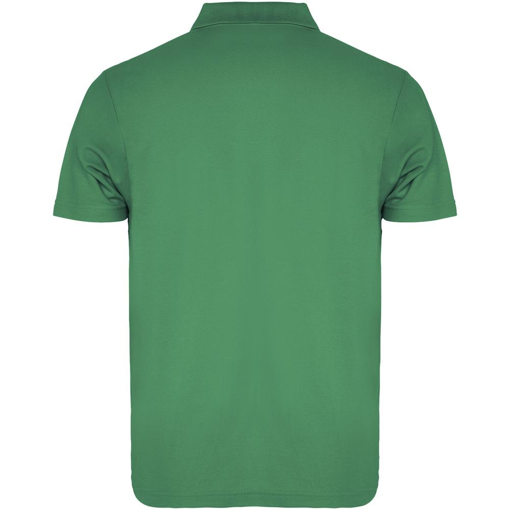 Koszulka polo z krótkim rękawem. Zapięcie na trzy guziki. Prążkowany kołnierz. Wzmocnione kryte szwy na karku i ramionach. Usuwalna metka.