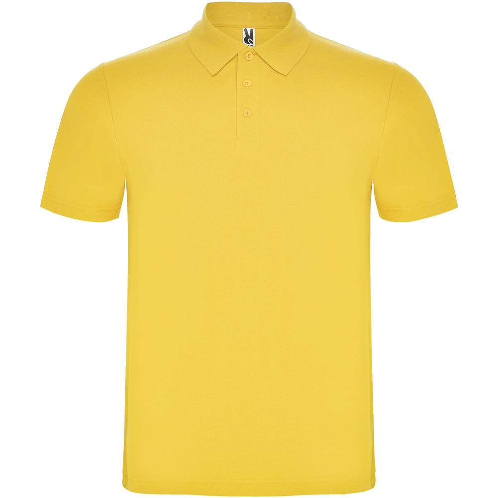Koszulka polo z krótkim rękawem. Zapięcie na trzy guziki. Prążkowany kołnierz. Wzmocnione kryte szwy na karku i ramionach. Usuwalna metka.