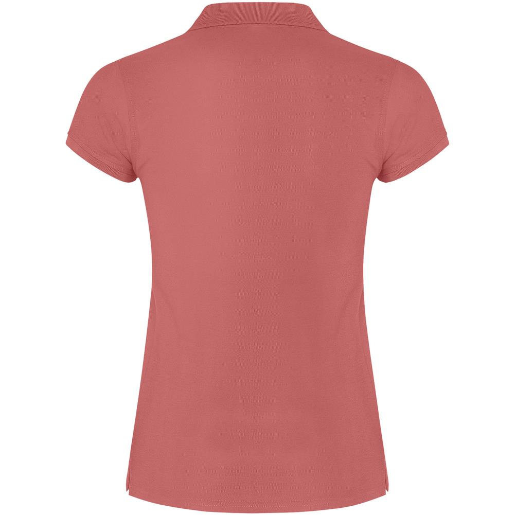 Damska koszulka polo z krótkim rękawem. Wzmocnione kryte szwy w wewnętrznym kołnierzyku. Prążkowany kołnierzyk i mankiety 1x1. Boczne szwy i dopasowany krój. Wąskie zapięcie na 3 guziki. Rozcięcia po bokach. Usuwalna metka.