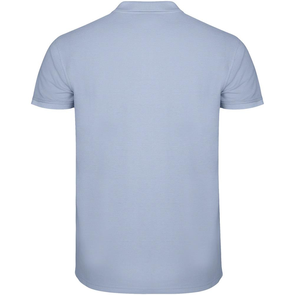 Męska koszulka polo z krótkim rękawem. Wzmocnione kryte szwy w wewnętrznym kołnierzyku. Prążkowane mankiety i kołnierzyk 1x1. Szwy boczne. Zapięcie na 3 guziki i boczne rozcięcia. Opcjonalna kieszeń. Usuwalna metka.