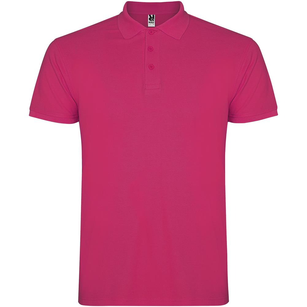 Męska koszulka polo z krótkim rękawem. Wzmocnione kryte szwy w wewnętrznym kołnierzyku. Prążkowane mankiety i kołnierzyk 1x1. Szwy boczne. Zapięcie na 3 guziki i boczne rozcięcia. Opcjonalna kieszeń. Usuwalna metka.