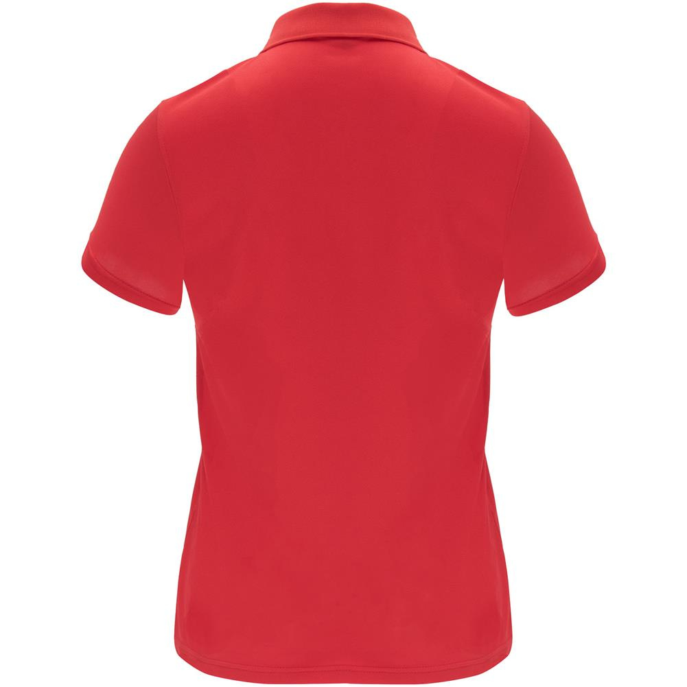 Techniczna koszulka polo z krótkim rękawem dla kobiet. Dzianinowy kołnierzyk z zapięciem na trzy guziki. Dopasowany krój. Oddychająca, łatwa do prania i suszenia tkanina. Usuwalna metka. Tkanina techniczna. Oddychająca tkanina.