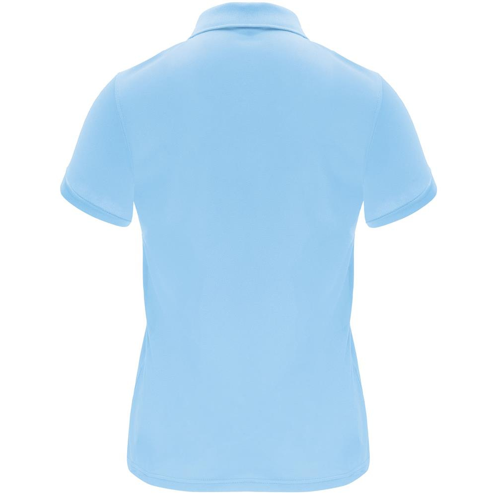 Techniczna koszulka polo z krótkim rękawem dla kobiet. Dzianinowy kołnierzyk z zapięciem na trzy guziki. Dopasowany krój. Oddychająca, łatwa do prania i suszenia tkanina. Usuwalna metka. Tkanina techniczna. Oddychająca tkanina.