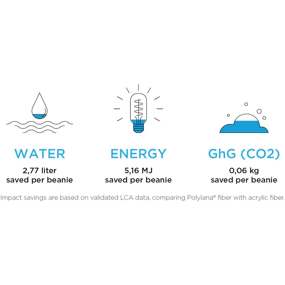 Czapka Hale jest wykonana z włókna Polylana® - niskoemisyjnej alternatywy dla 100% włókien akrylowych i wełnianych - oszczędzając wodę, energię i redukując emisję CO2 podczas procesu produkcji i barwienia. W porównaniu z włóknem akrylowym, każda czapka Hale pozwala zaoszczędzić 2,77 litra wody, 5,16 MJ energii i 0,06 kg GhG (CO2). Oszczędności są oparte na zweryfikowanych danych oceny cyklu życia (LCA). Wykonana z dzianiny ściągaczowej 1x1 z włóknem Polylana® i akrylem o gęstości 12. Idealny wybór dla tych, którzy cenią modę, a jednocześnie dbają o środowisko.