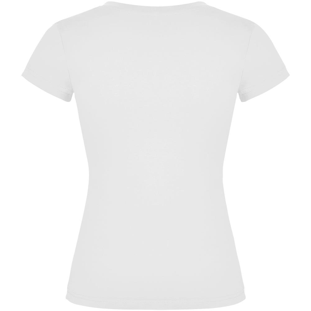 Damska koszulka z krótkim rękawem z dekoltem w serek i prążkowanymi wykończeniami 1x1. Wąski krój z bocznymi szwami. Usuwalna metka.