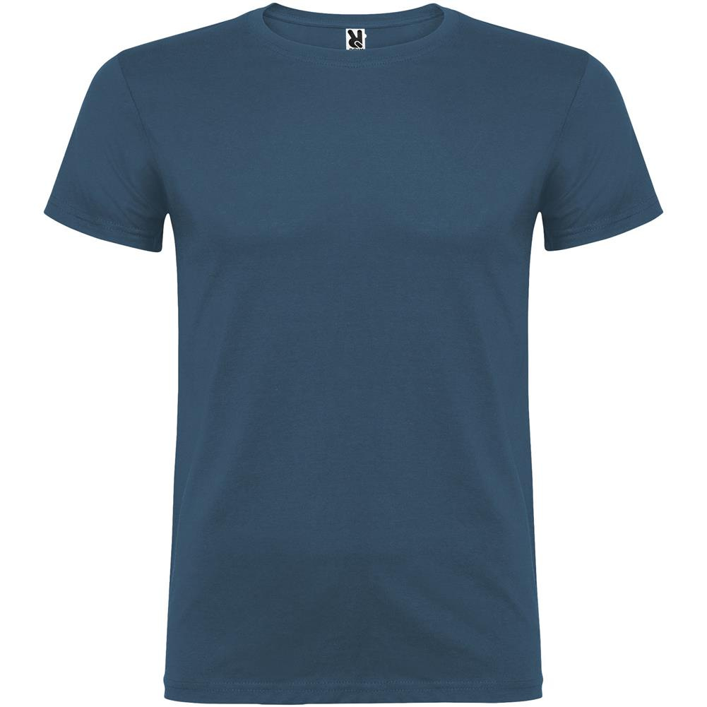 T-shirt z krótkim rękawem. Podwójna tkanina z dodatkiem elastanu przy kołnierzu. Wzmocnione, kryte szwy na karczku. Brak szwów bocznych w wersji dla dorosłych. Usuwalna metka.