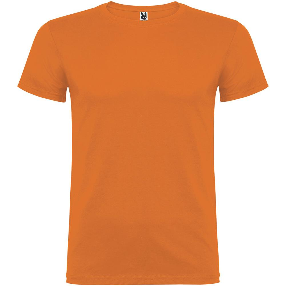 T-shirt z krótkim rękawem. Podwójna tkanina z dodatkiem elastanu przy kołnierzu. Wzmocnione, kryte szwy na karczku. Brak szwów bocznych w wersji dla dorosłych. Usuwalna metka.