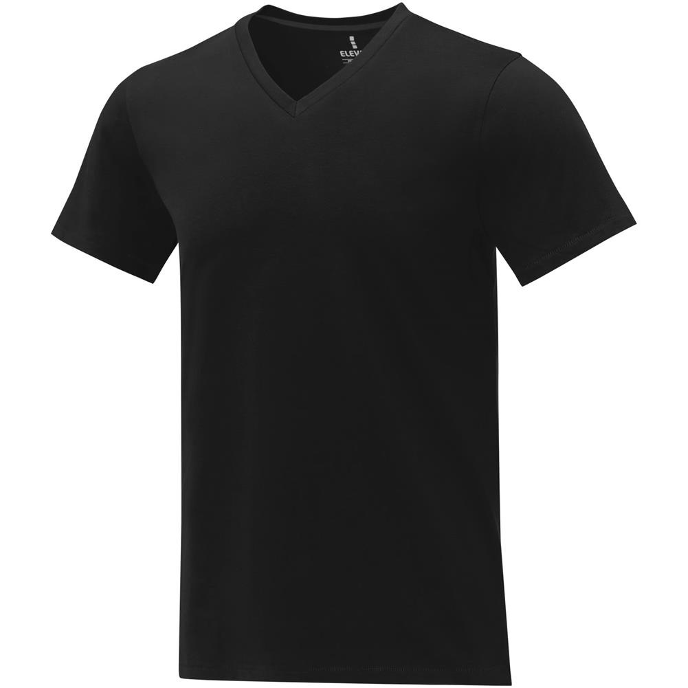 Męska koszulka z krótkim rękawem V-neck marki Somoto wykonana z bawełny o gramaturze 160 g/m2 jest idealna na każdą okazję i stanowi wygodny dodatek do każdej garderoby. Bawełna typu ringspun zapewnia mocniejszą i gładszą przędzę, dzięki czemu materiał jest bardziej wytrzymały i gwarantuje wysoką jakość. Dekolt w kształcie litery V dodaje stylu, a boczne szwy zapewniają doskonałe dopasowanie. Nadrukowany na karku znak firmowy Elevate zwiększa komfort noszenia, a wzmocnione ramiona zapewniają stałe dopasowanie nawet przy długotrwałym użytkowaniu.