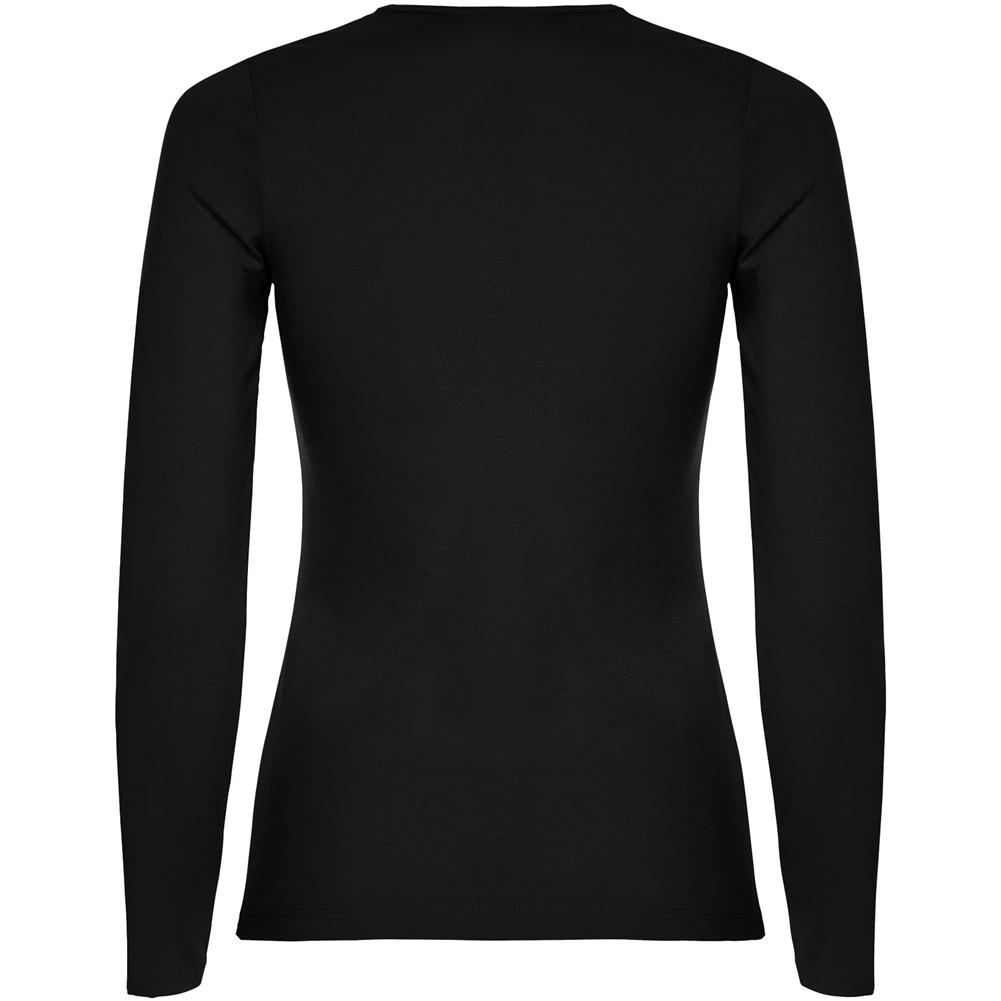 Częściowo dopasowana koszulka z długim rękawem i delikatnym wykończeniem przy szyi. Bez mankietów. Szwy boczne. Usuwalna metka.