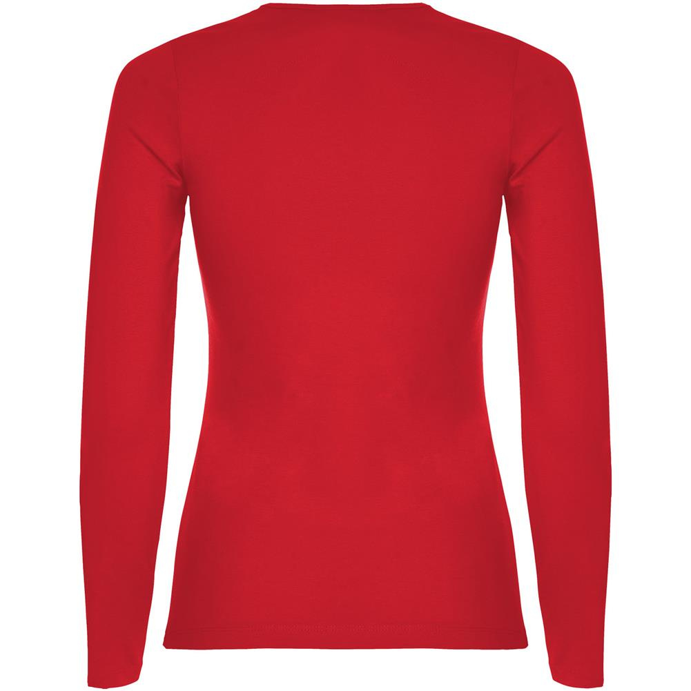 Częściowo dopasowana koszulka z długim rękawem i delikatnym wykończeniem przy szyi. Bez mankietów. Szwy boczne. Usuwalna metka.