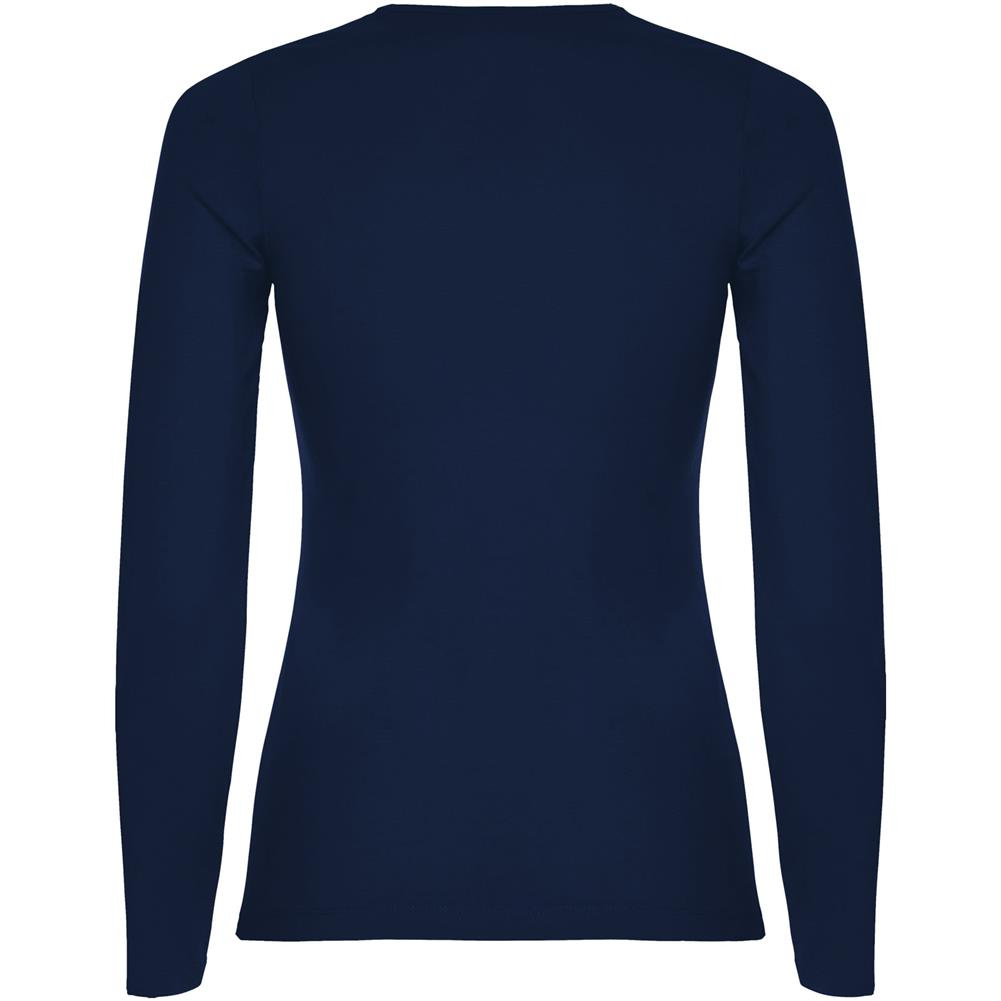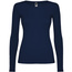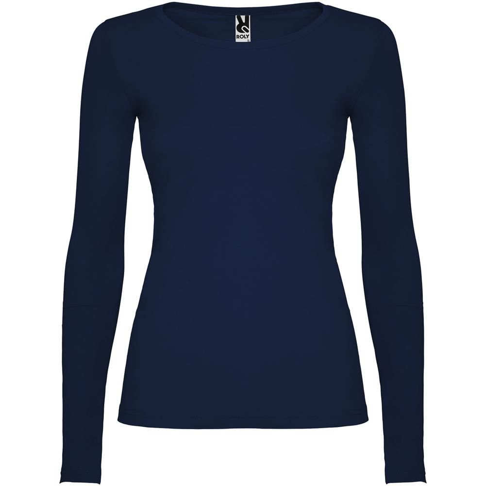 Częściowo dopasowana koszulka z długim rękawem i delikatnym wykończeniem przy szyi. Bez mankietów. Szwy boczne. Usuwalna metka.