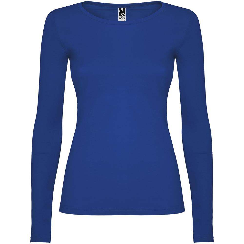 Częściowo dopasowana koszulka z długim rękawem i delikatnym wykończeniem przy szyi. Bez mankietów. Szwy boczne. Usuwalna metka.