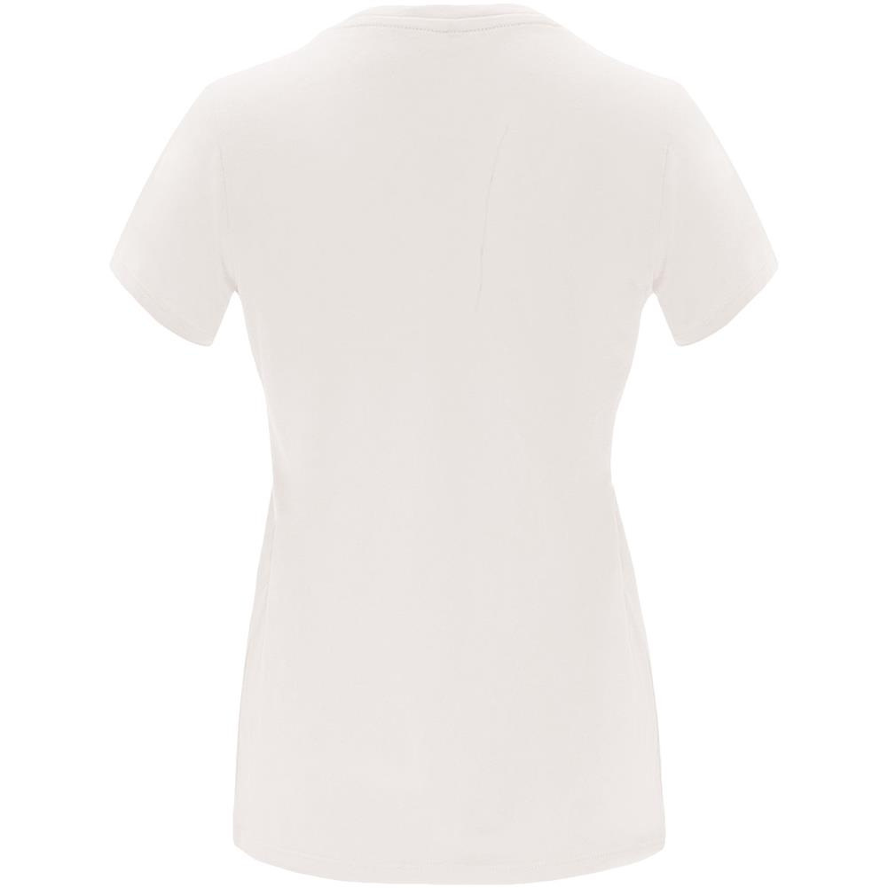 Damska dopasowana koszulka z krótkim rękawem. Okrągły prążkowany dekolt 1x1. Wzmocnione, kryte szwy na kołnierzu. Usuwalna metka.