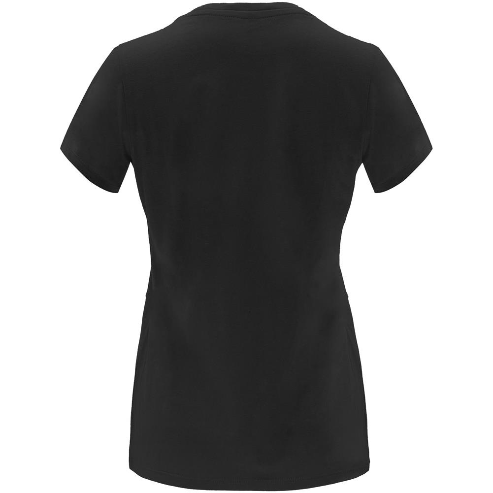 Damska dopasowana koszulka z krótkim rękawem. Okrągły prążkowany dekolt 1x1. Wzmocnione, kryte szwy na kołnierzu. Usuwalna metka.
