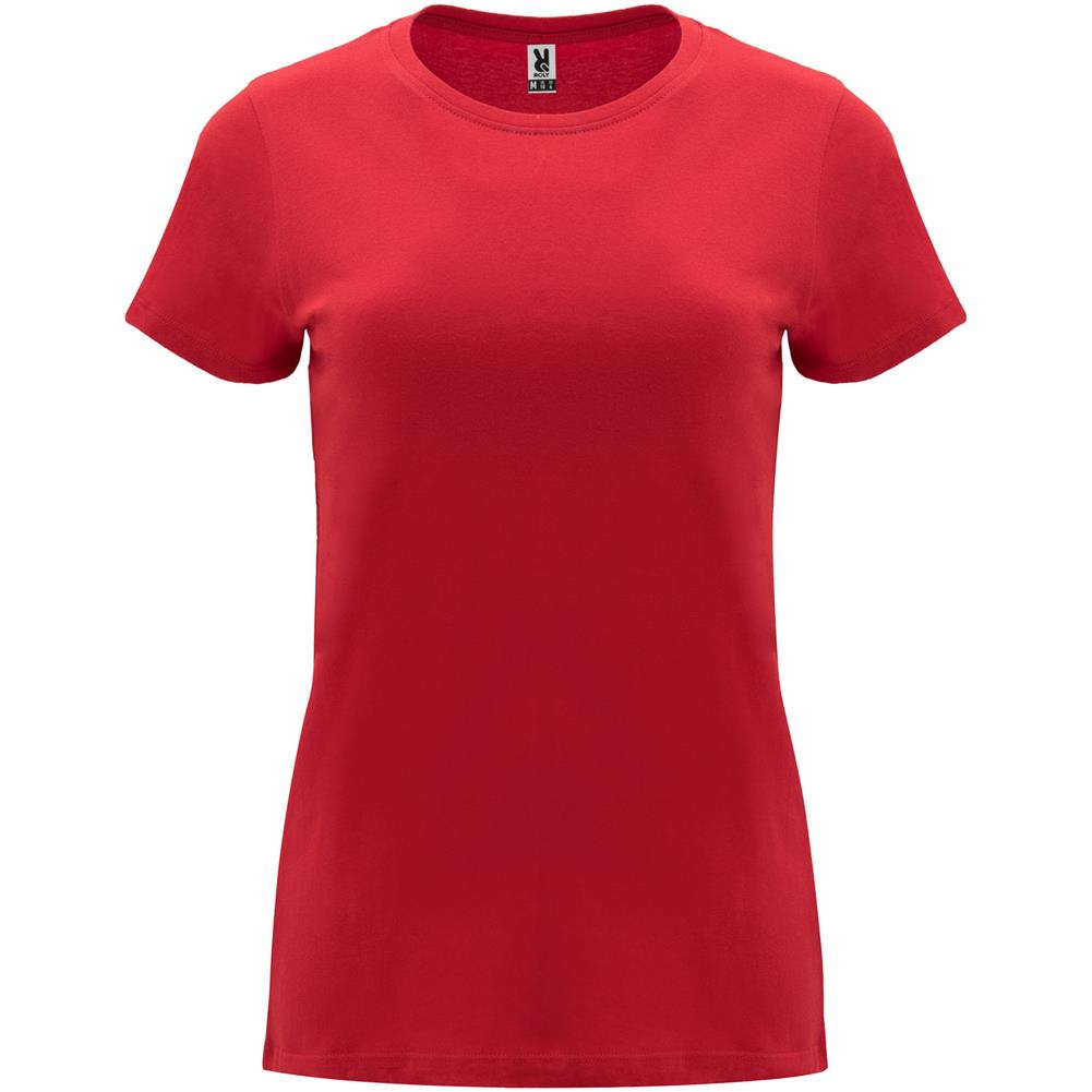 Damska dopasowana koszulka z krótkim rękawem. Okrągły prążkowany dekolt 1x1. Wzmocnione, kryte szwy na kołnierzu. Usuwalna metka.