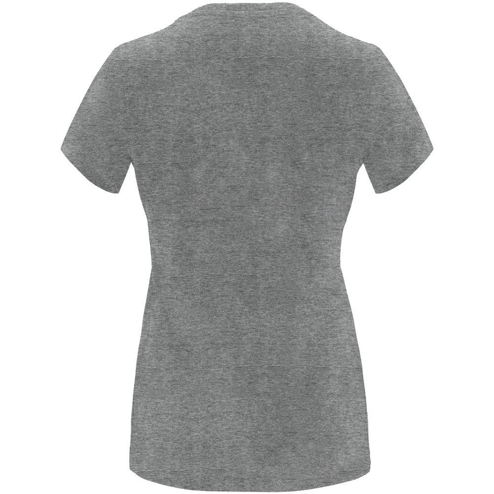 Damska dopasowana koszulka z krótkim rękawem. Okrągły prążkowany dekolt 1x1. Wzmocnione, kryte szwy na kołnierzu. Usuwalna metka.