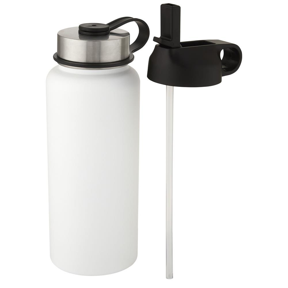 Bidon typu „dwa w jednym” z podwójnymi ściankami ze stali nierdzewnej i izolacją próżniową wykonaną z miedzi, wyposażony w 2 pokrywki: jedną pokrywkę ze słomką ułatwiającą picie i jedną szczelną, zakręcaną pokrywkę z pętelką do przenoszenia. Izolowana konstrukcja ze stali nierdzewnej 18/8 zapobiega skraplaniu się wody na zewnątrz butelki, a modne wykończenie z farby proszkowej sprawia, że jest ona wyjątkowo trwała. Szeroki otwór do łatwego napełniania, nalewania i czyszczenia. Wolna od BPA, przetestowana i zatwierdzona zgodnie z niemiecką ustawą o bezpieczeństwie żywności (LFGB). Sprawdzona i zatwierdzona pod kątem zawartości ftalanów zgodnie z przepisami REACH. Idealny do kostek lodu. Pojemność wynosi 1 litra. Zaleca się mycie ręczne. Zapakowany w kartonowe pudełko upominkowe wykonane z materiałów pochodzących z recyklingu.