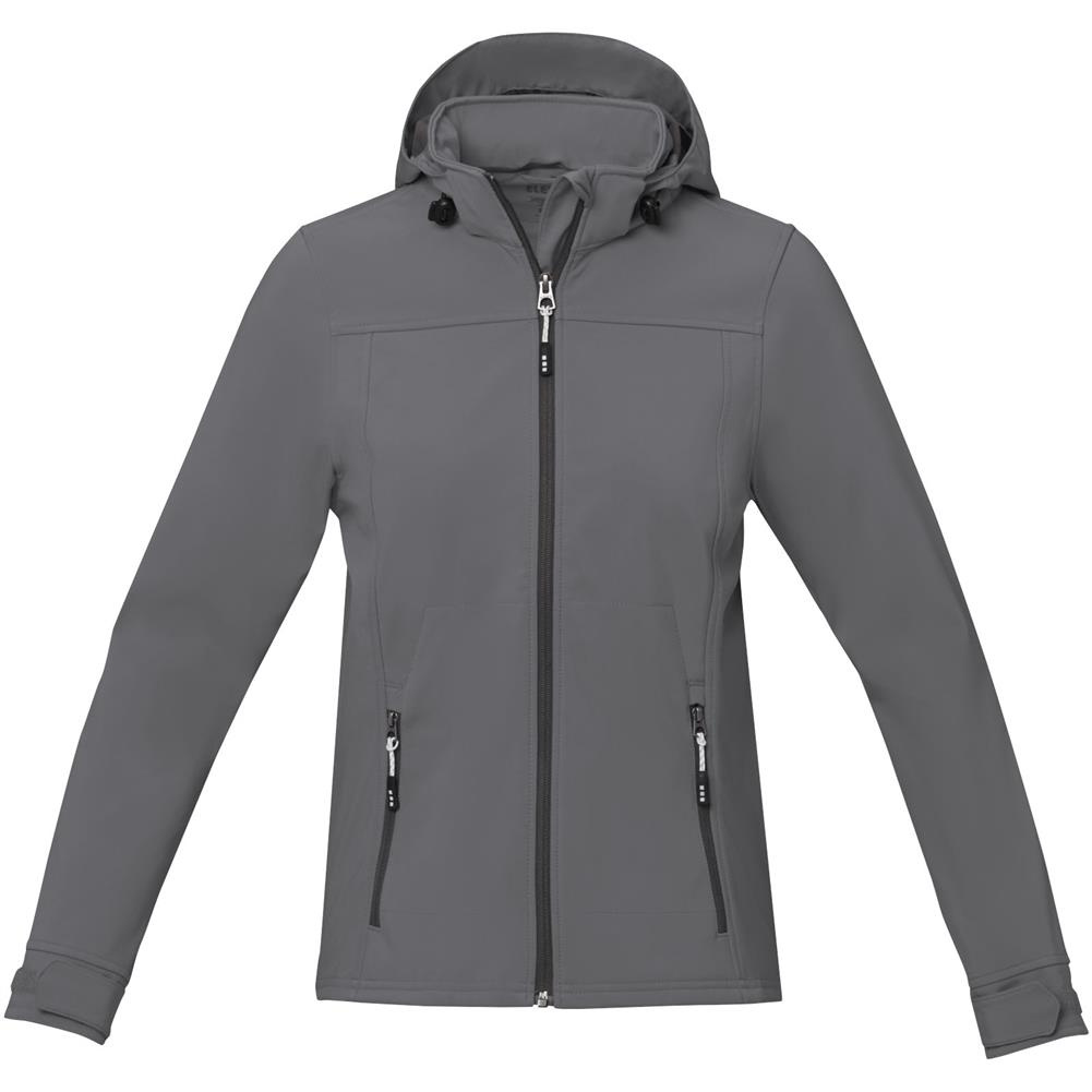 Damska kurtka softshell Langley - dla najwyższej wydajności na świeżym powietrzu. Kurtka ma wodoodporność 5000 mm, dzięki czemu będziesz sucha i chroniona przed żywiołami. Wyjątkowa oddychalność na poziomie 3000 g/m² odprowadza wilgoć, zapewniając Ci komfort podczas intensywnych aktywności. Ciesz się nieograniczonym ruchem dzięki czterokierunkowej elastycznej tkaninie, łączącej poliester i elastan (300 g / m²), zaprojektowanej tak, aby zginać się i dostosowywać do każdego ruchu ciała. Połączona warstwa wewnętrzna zawiera mikropolar wykonany z poliestru, uzupełniony laminacją TPU, która zwiększa izolację i ciepło kurtki oraz chroni ją przed każdą pogodą. Odpinany kaptur dostosowuje się do różnych warunków pogodowych, a regulowane mankiety z zapięciem na rzep gwarantują ścisłe i wygodne dopasowanie. Elastyczny sznurek ściągający z regulowanym zapięciem na sznurek pozwala dopasować kurtkę do dowolnych preferencji. Dzięki bezpiecznym kieszeniom na dłonie z zamkami błyskawicznymi możesz mieć swoje niezbędne rzeczy pod ręką podczas każdej przygody. Bądź gotowy na każdą przygodę w stylu, komforcie i pewności siebie dzięki kurtce softshell Langley. Ta kurtka ma dopasowany krój, który zapewnia kobiecy wygląd.