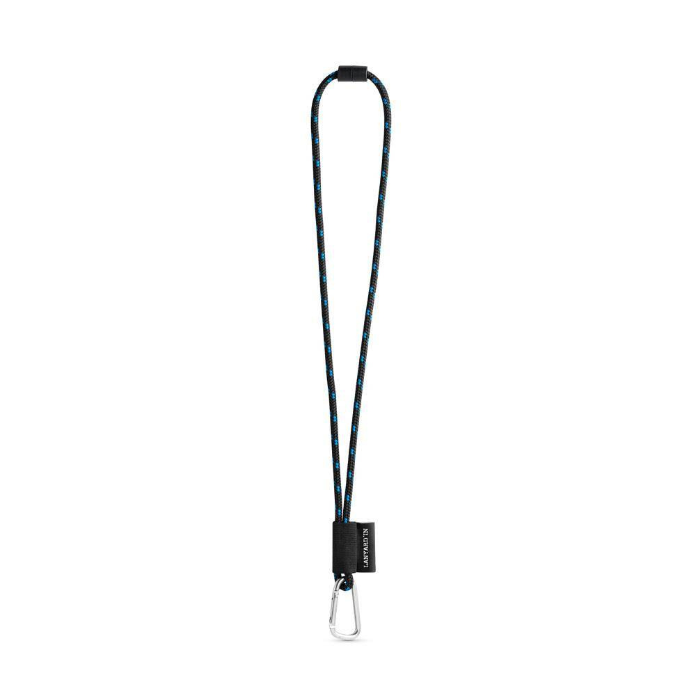 Personalizowana smycz Lanyard długa nautic, wykonana z poliestru, w 12 standardowych kolorach dostępnych do personalizacji. Zawiera następujące akcesoria i dodatki: czarna gumka, Etykieta sublimacyjna 43 x 22 mm, metalowy haczyk z 55 mm i zamek zabezpieczający ø6 mm. ø7 x 470 mm